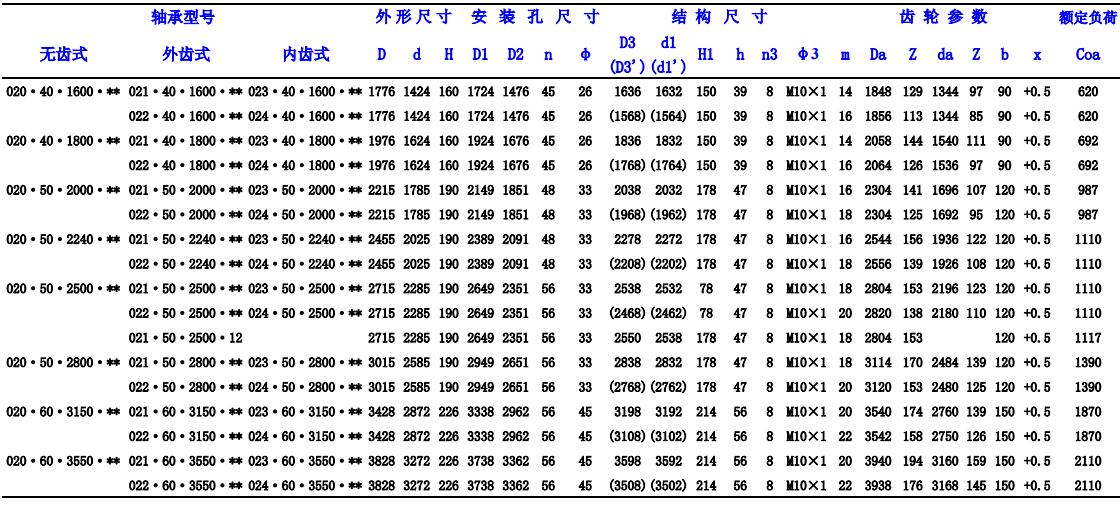龍馬雙排異徑球轉盤軸承型號參照表: